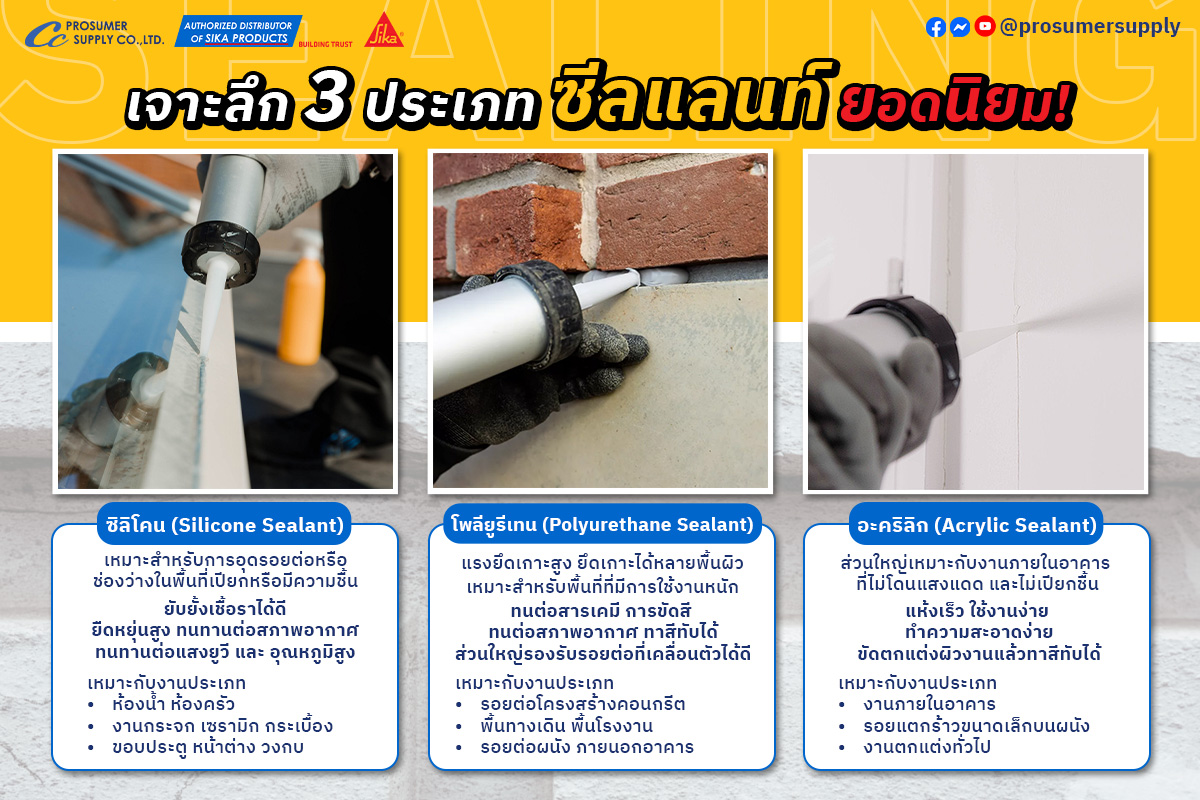 👉 หากคุณกำลังมองหาซีลแลนท์ที่ตอบโจทย์ทั้งงานบ้านและงานโครงการ หรือต้องการคำแนะนำจากผู้เชี่ยวชาญ สามารถติดต่อเราได้ที่ prosumersupply.co.th/ติดต่อเรา เพื่อให้มืออาชีพช่วยเลือกผลิตภัณฑ์ที่เหมาะกับคุณที่สุด!