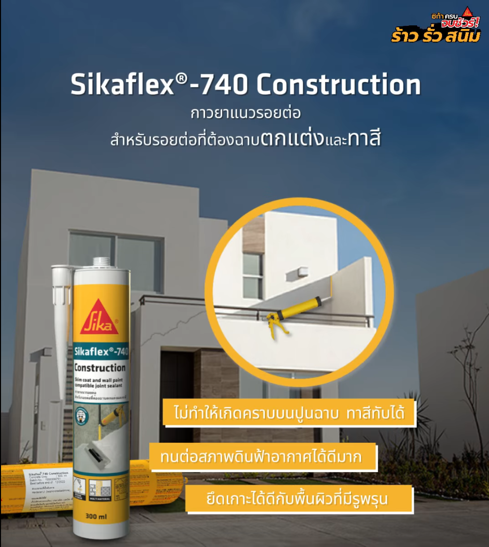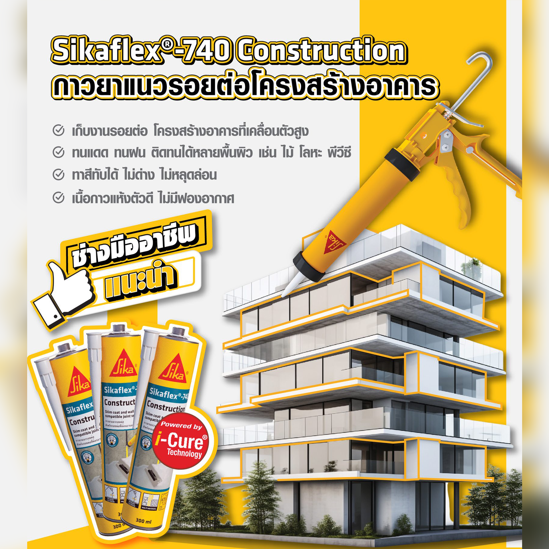Sikaflex®-740 Construction เป็นกาวยาแนวรอยต่อส่วนประกอบเดียวชนิดยืดหยุ่น สำหรับรอยต่อที่มีการเคลื่อนตัว และรอยต่อโครงสร้างคอนกรีตทั่วไปที่ต้องฉาบบาง และสามารถทาสีทับได้ีใช้ได้กับ รอยต่อผนังอาคาร รอยต่อผนังและพื้น แนวขอบวงกบ ผนังสำเร็จรูป เป็นต้น